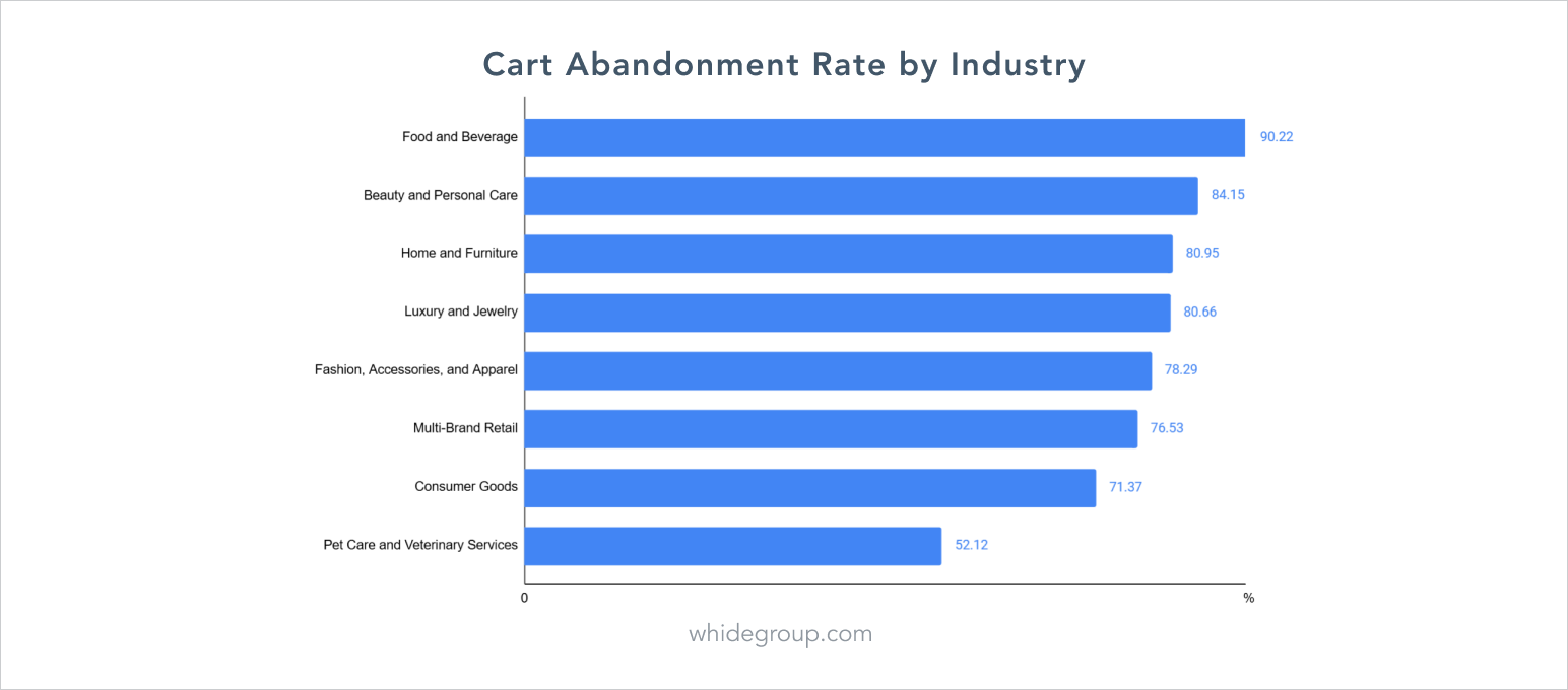 Naturally, some level of cart abandonment is unavoidable. But if your rate is significantly higher than the industry average (see the chart below), it’s a clear sign that something’s wrong.