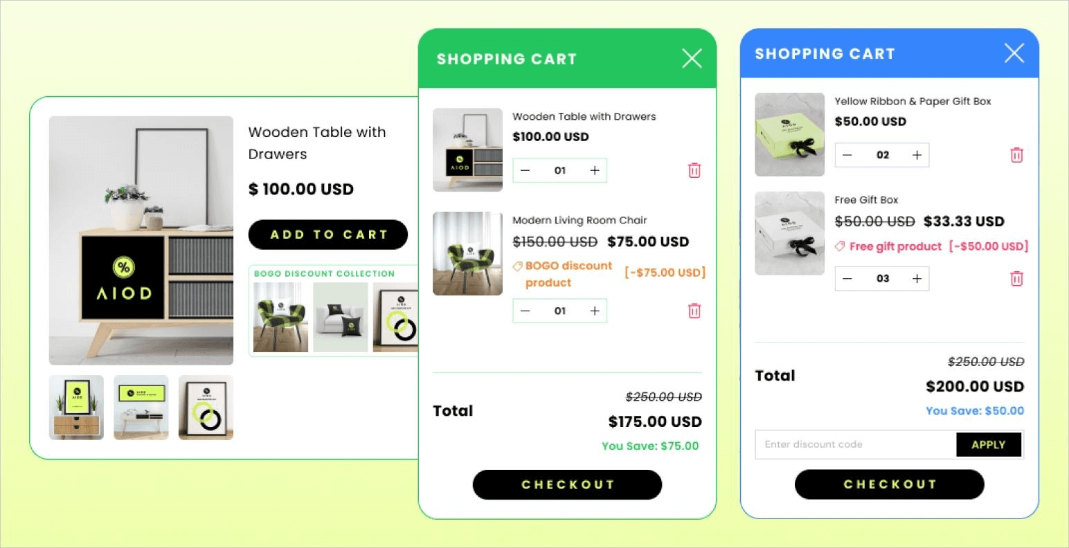 With features like auto-add free gifts and BOGO products, AIOD ensures every shopper feels rewarded, helping Shopify store owners increase conversions and keep customers coming back.